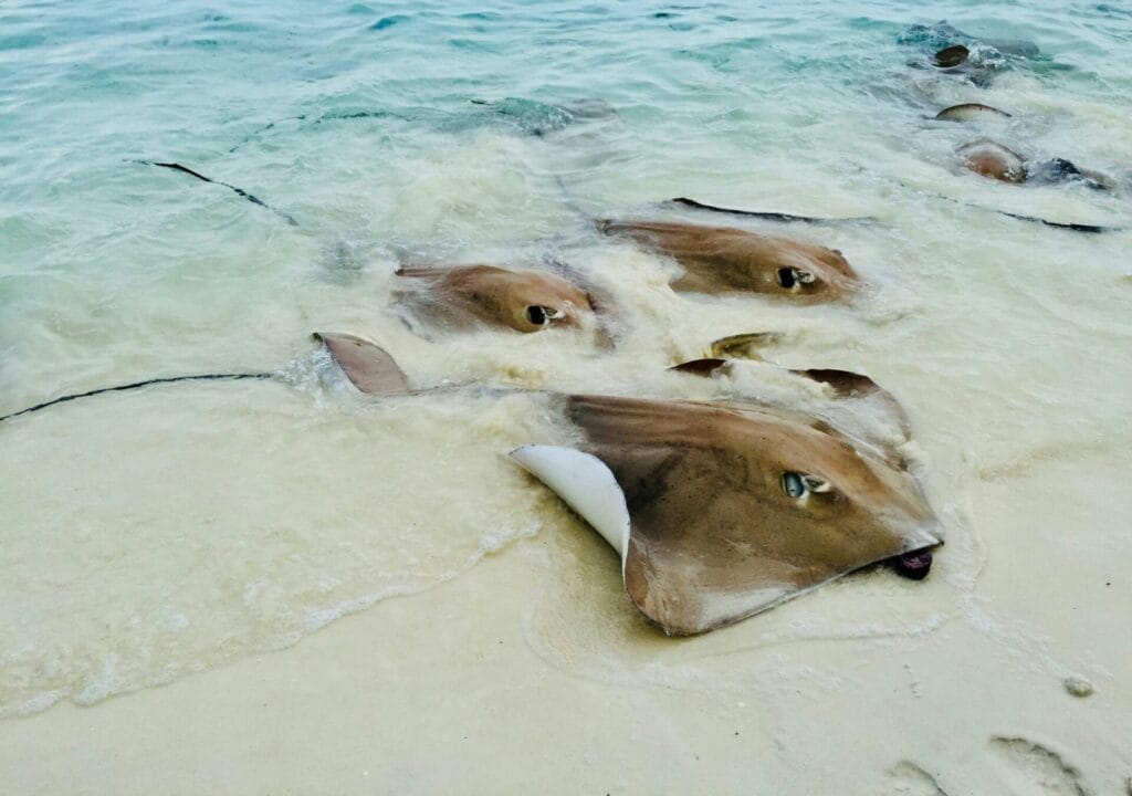 Smooth stingrays have a sharp, finely serrated barb at the end of their tail. They don’t attack with their ‘sting’, but if provoked will use their barb out of defence. To do this, they raise their tail up like a scorpion. Stings are painful, but usually not fatal